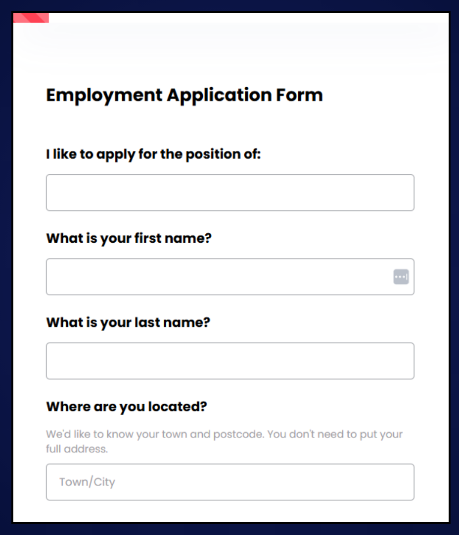 3. What types of questions are in a job application form?