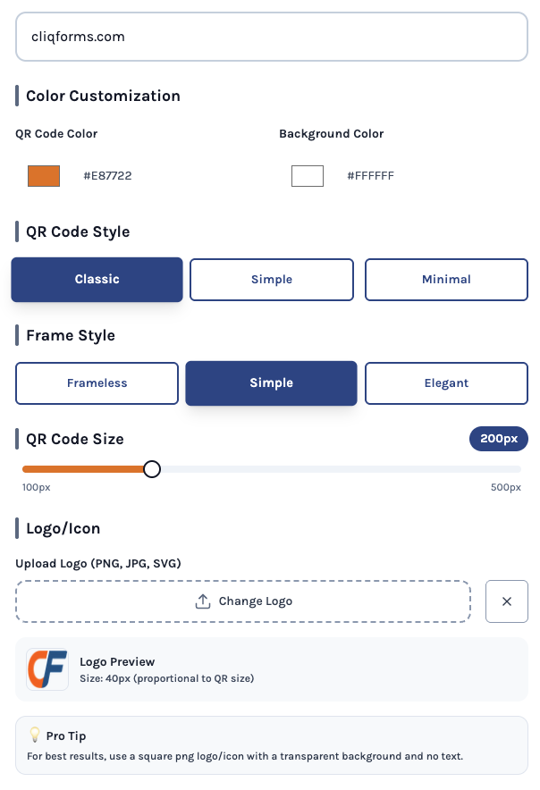 Customise your QR code exactly the way you want and see instant updates as you design.