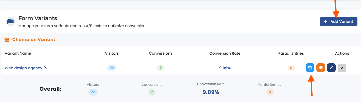 To start A/B testing, first make sure that you have form variants created.