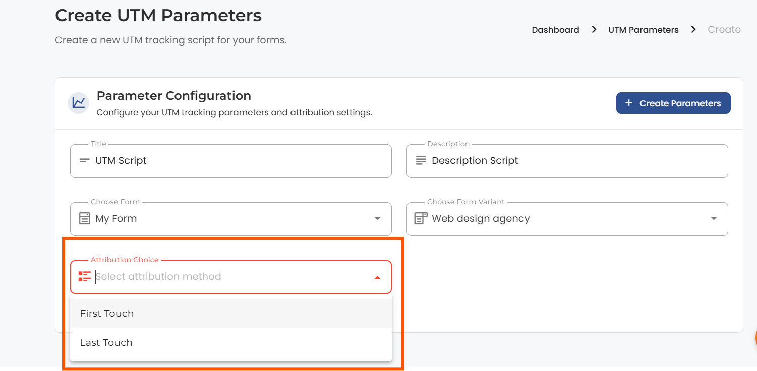 Save: Click the âCreate Parametersâ button to finalize and save your UTM parameter setup.