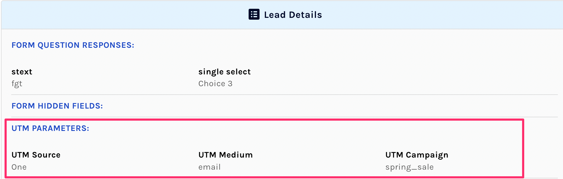 Verify Captured Data: Check the leads section of your platform to verify that the correct UTM parameters have been recorded according to your chosen attribution model (First Touch or Last Touch). Ensure the data matches your expectations and the parameters youâve set.