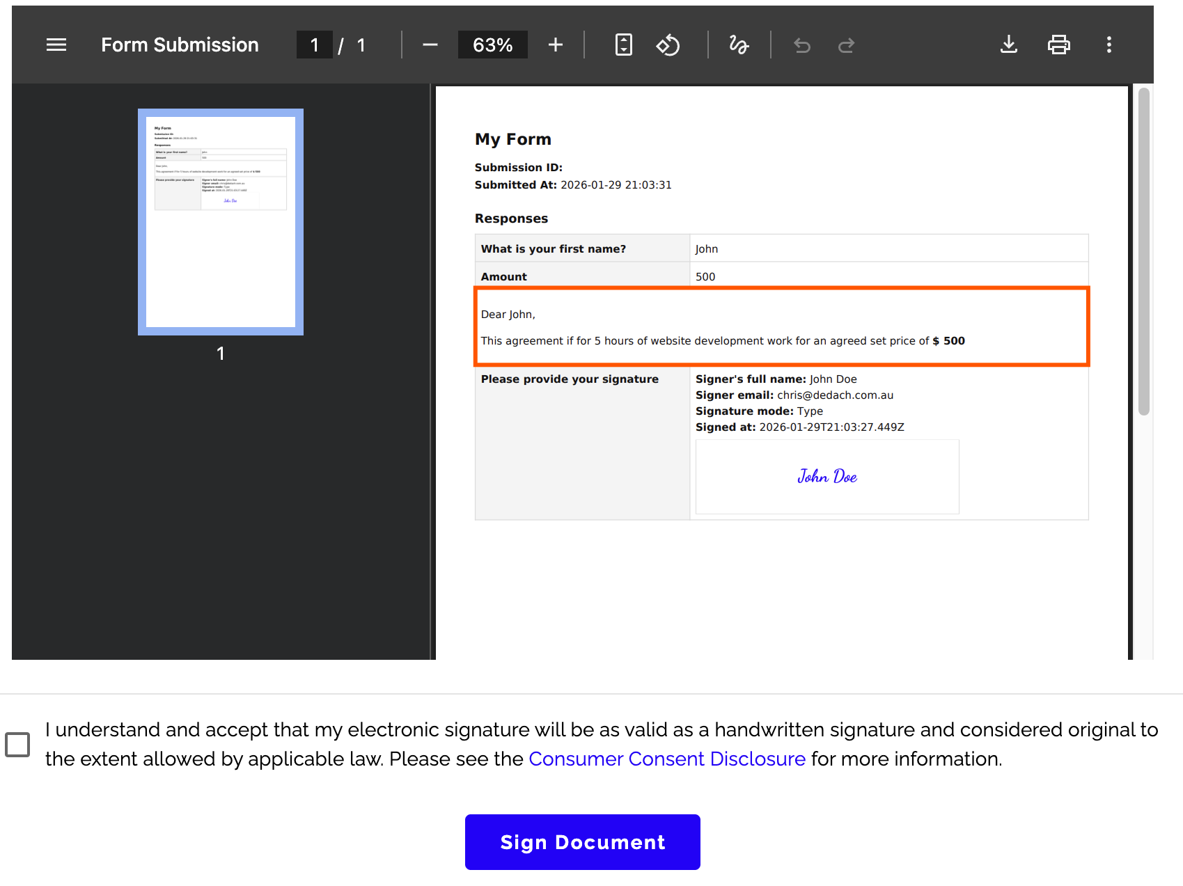 Signed document